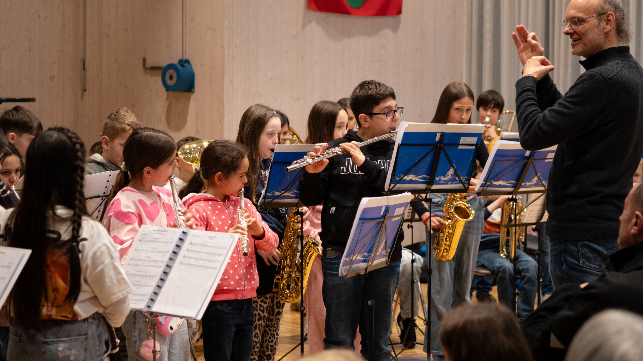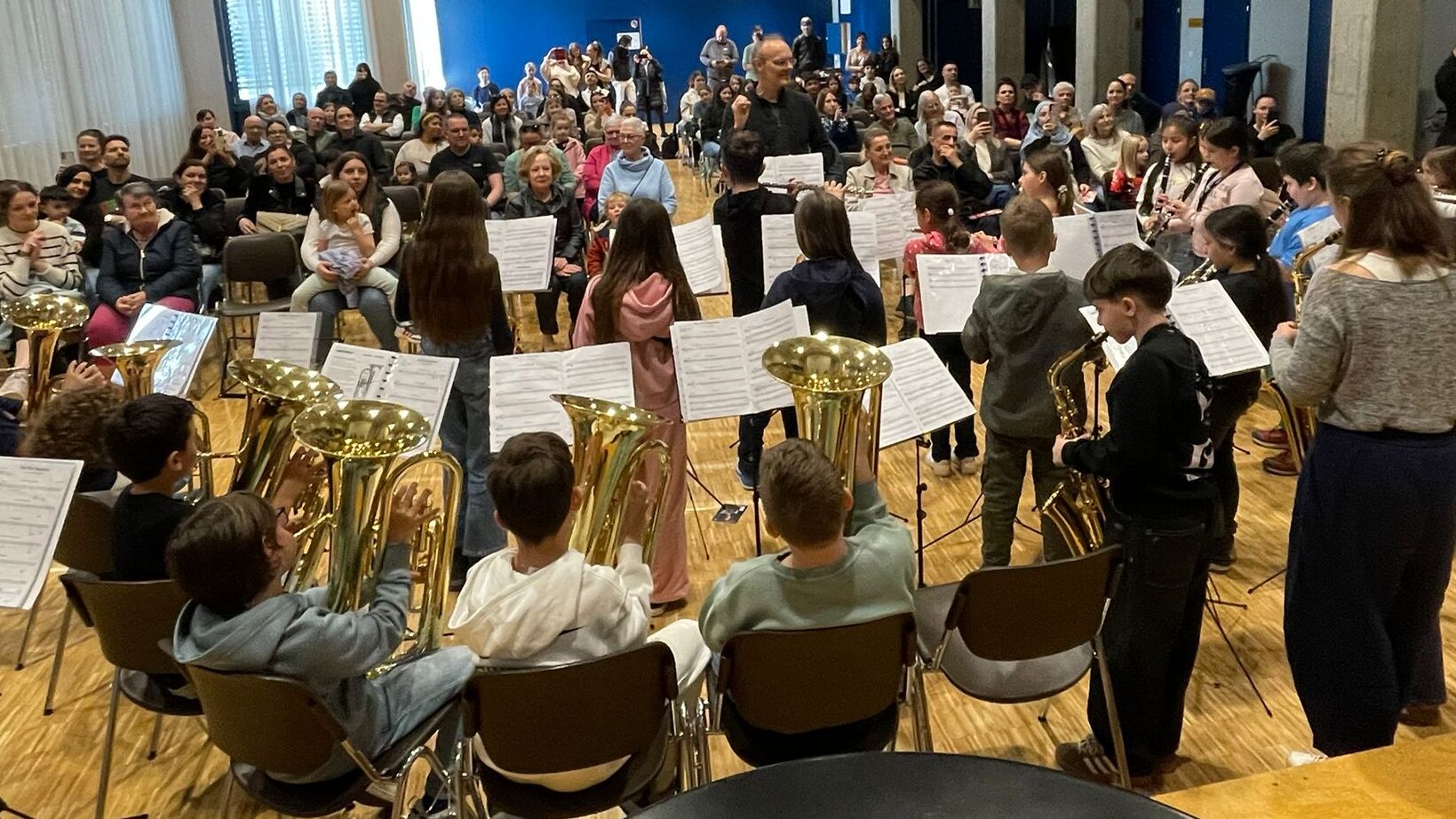 - Den Bläser-Klassen 3a von Livia Koch, Schulhaus Höfli, sowie 3c/4c von Mascia Buri, Schulhaus Zentral, mit den Instrumentallehrern Sebastian Rosenberg und Markus Muff sowie der Moderation des Leiters Musikschule Rontal, Heinz Dürger.